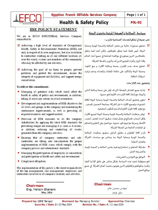 We never compromise on Health, Safety, and Environmental (HSE) standards for the sake of business performance. Our dedication to safety helps minimize environmental impact, control risks to our employees, and promote safe work practices at all times.