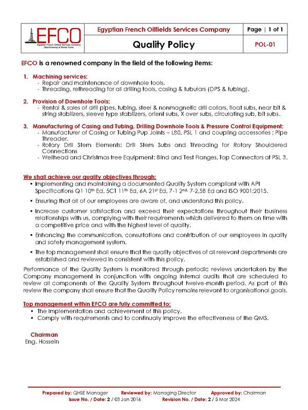 This includes our machining and welding services, as well as the manufacturing processes of downhole drilling tools and pressure control equipment.